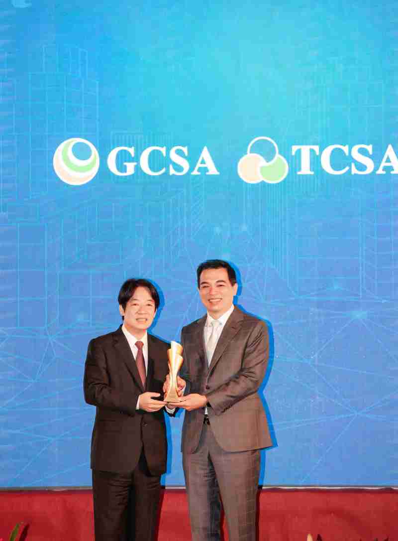 达全方位永续表现获全球永续奖及台湾永续奖肯定,,,,由副总统赖清德颁奖 (左),,918.COM总经理柯富仁 (右) 代表领奖