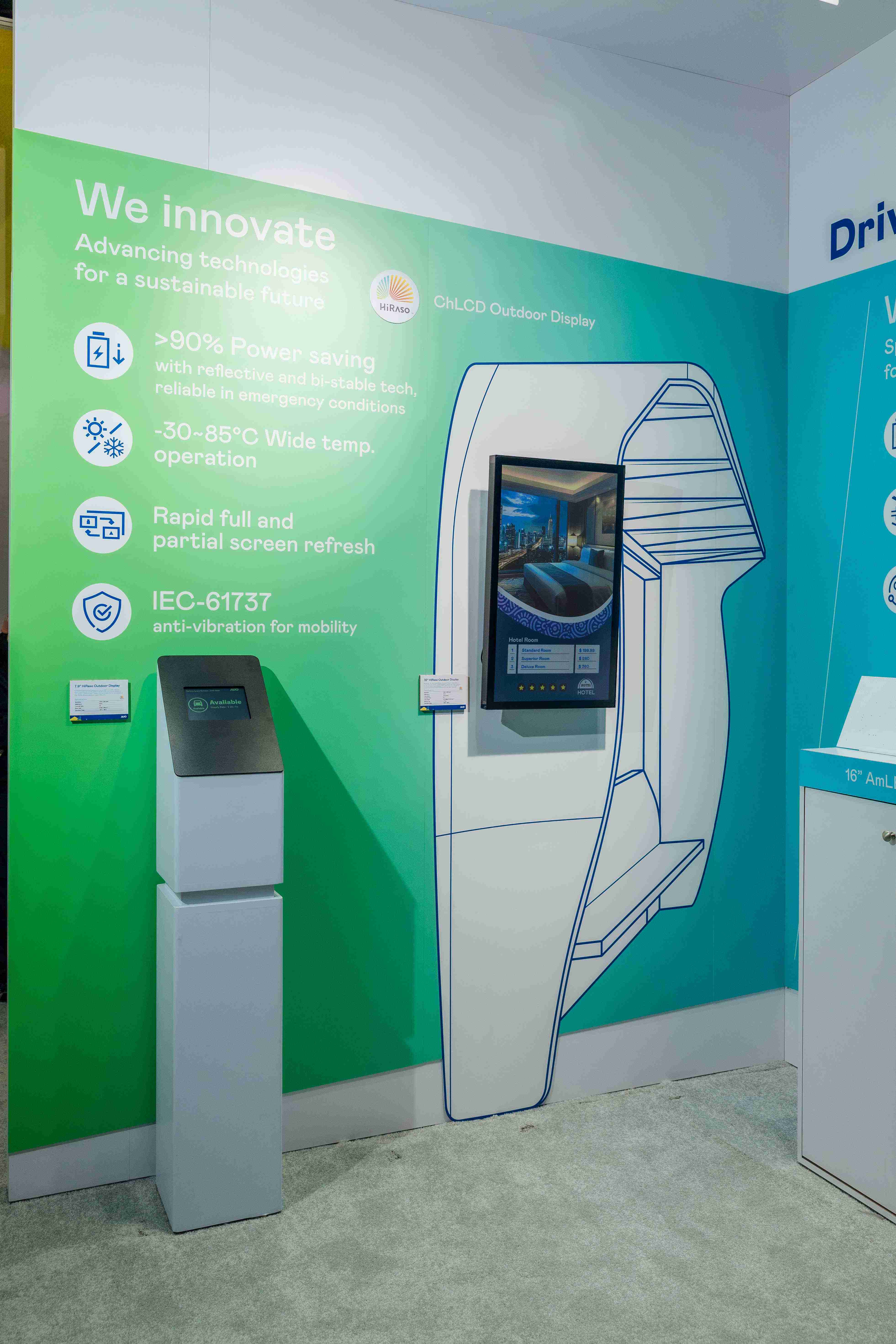 HiRaso胆固醇液晶显示器运用反射环境光线的方式,,,,呈现影像显示时零耗能的环保省电诉求,,光线愈强愈能呈现绝佳的色彩饱和度及显示效果,,,同时在摄氏-30度至85度间宽温的使用优势,,,,为户外电子看板的新首选。。