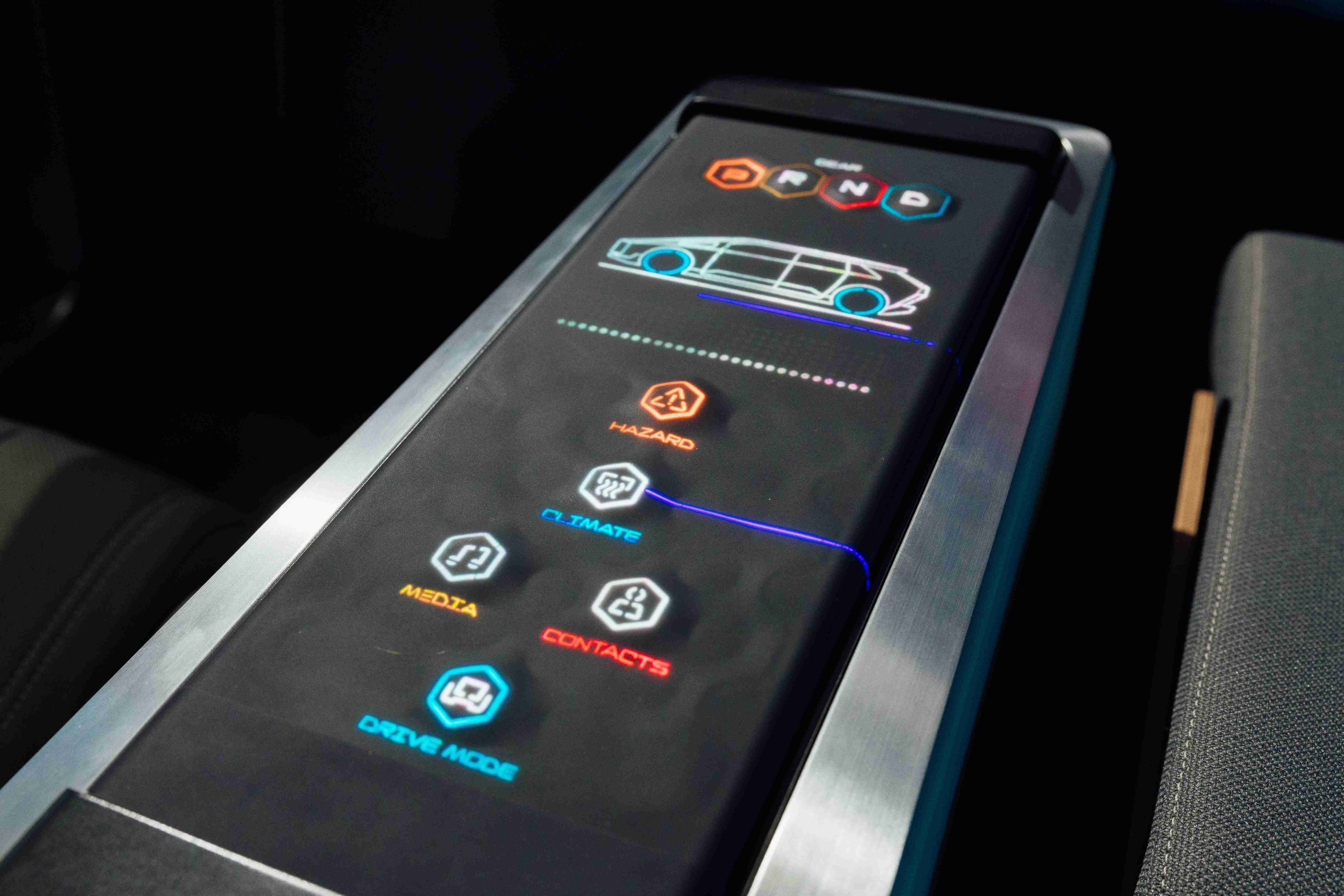 多变形态中控显示(Morphing Center Control)拥有动态变化的表面,,,平时常态显示车辆功能,,,,进一步操作时,,则会隆起成为3D 按钮,,,并在触控时以震动回馈,,以精细的操作开创人机互动新境界。。。。