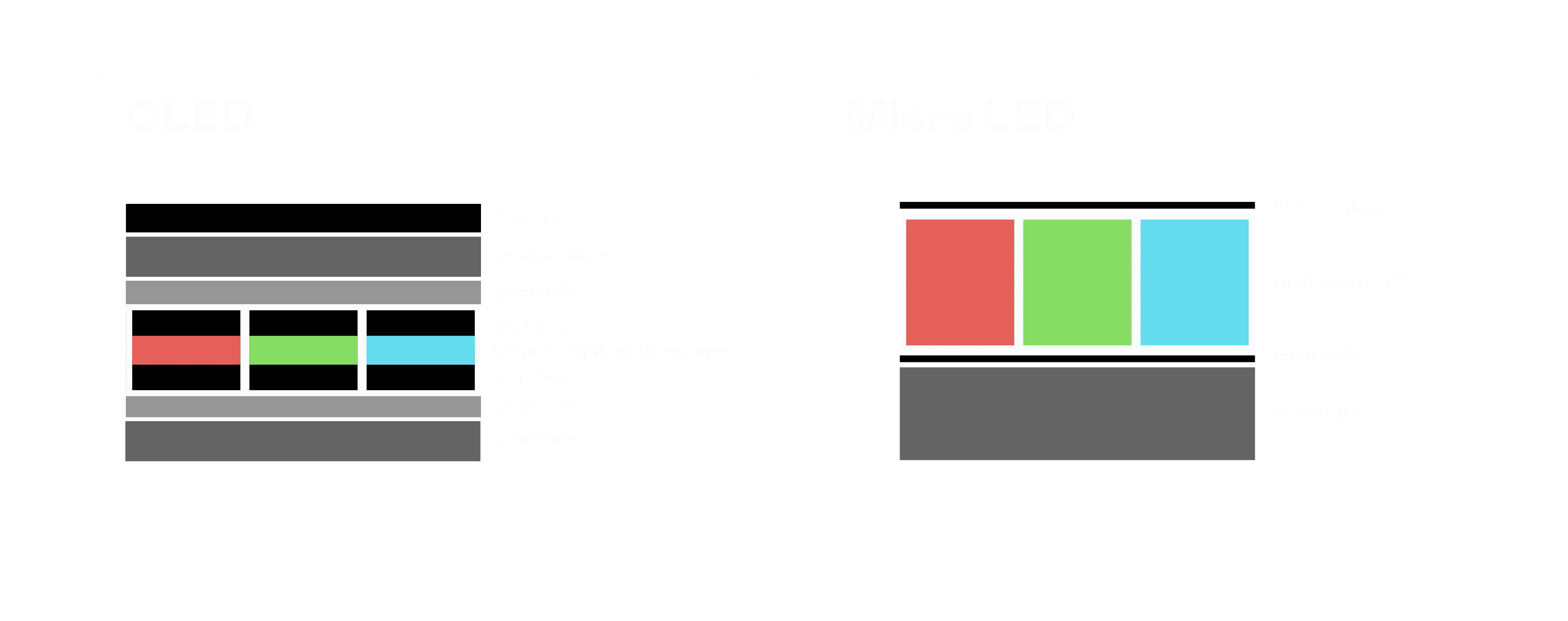 以 LED 做为显示画素,,可让 LED 的发光效率发挥到极致,,,,从而让显示器具备优异的亮度表现,,,不论是在户外或室内,,,均具备出众的显示效果。。。。同时,,,与使用有机材料的 OLED 相比,,,LED 具备更稳定、、、、寿命更长的特性,,不仅不会有画面烙印问题,,,而且更不容易出现故障、、、坏点。。。