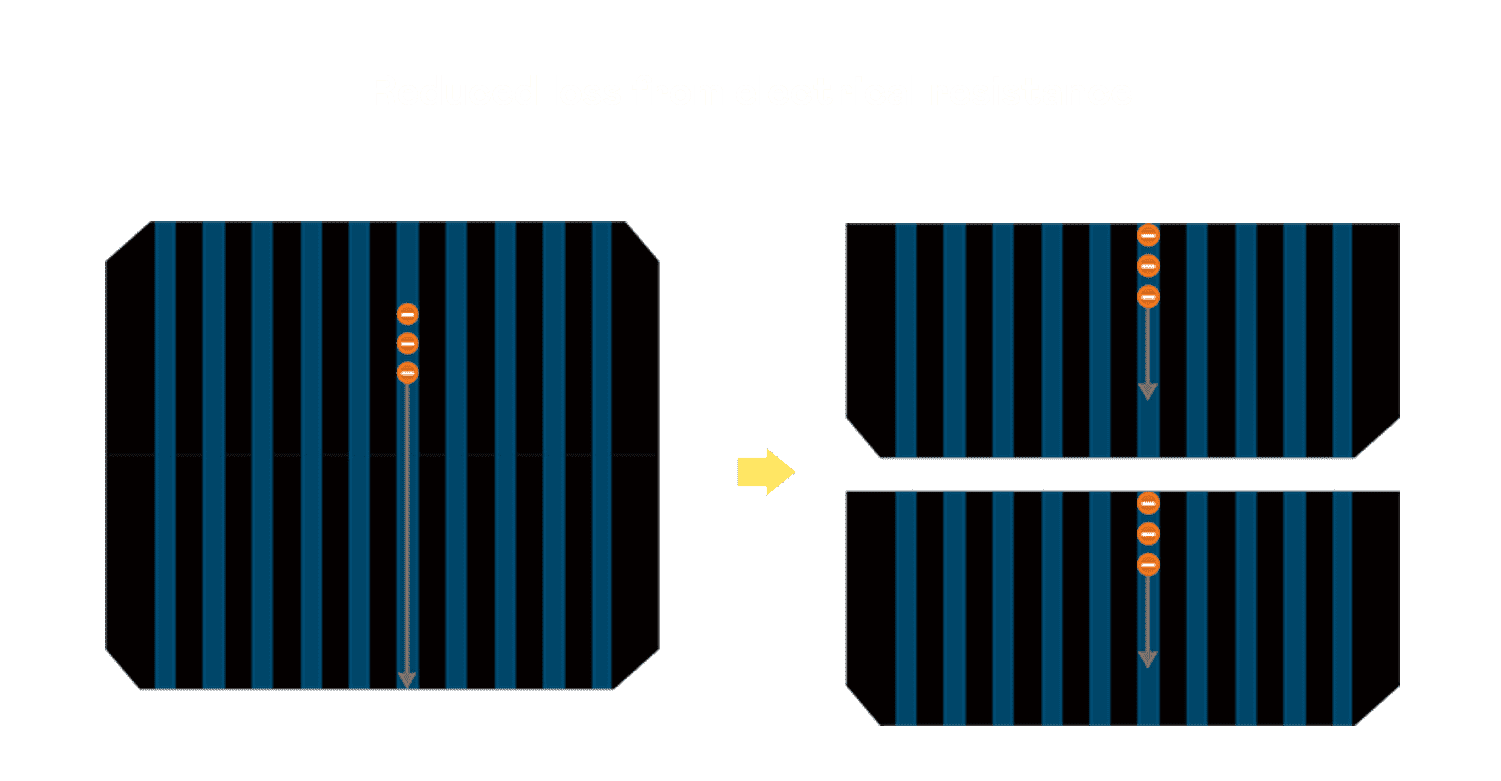 • 多条电极栅结构,,,,可有效降低外力对于电池的影响,,,,限制电池隐裂 (Micro-cracks) 范围,,防止电流传输路径 (Current distribution) 之损坏进一步扩大。。。。